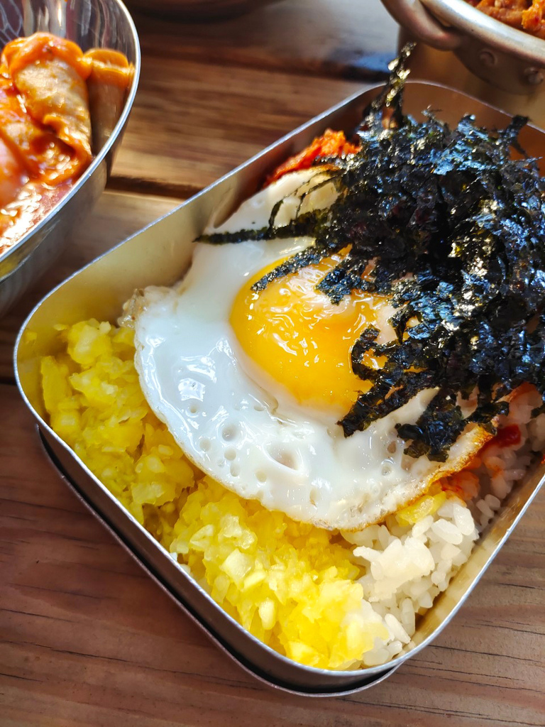 ▼我最愛的白飯,還有烤肉/蛋/泡菜/海苔,以及提味的靈魂:韓國黃蘿蔔&辣醬&麻油,幾乎所有韓國小食精華元素都在這一盒裡面。