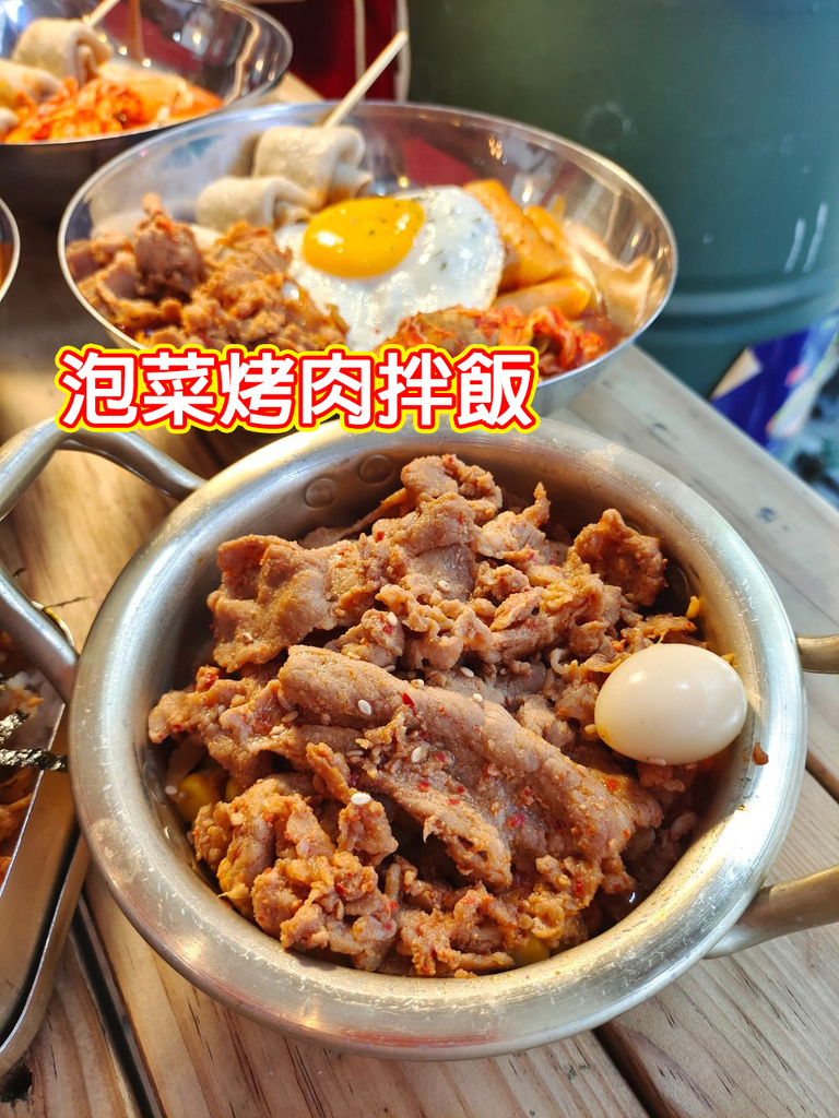 再來是其他同事點的,泡菜烤肉飯、黑輪串,還有韓湘闆娘推薦的拉啵奇、新品莫扎瑞拉絲絲辣年糕。