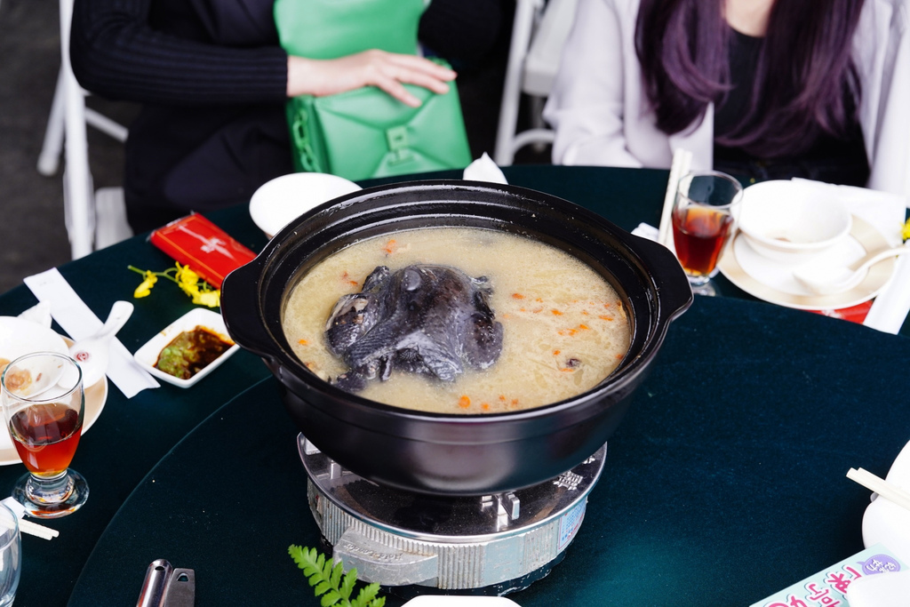 鋪了滿滿魚翅,同事主家大手筆啊!全隻烏骨雞,湯頭肉眼看得濃郁。