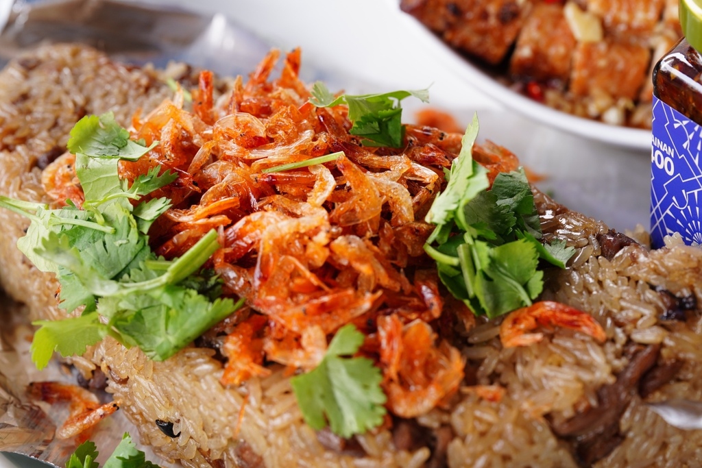 👇米糕是台灣的圖案,吃一口伴著櫻花蝦+櫻花蝦XO醬,海味提香!