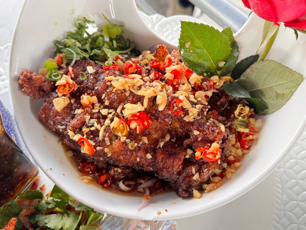 坦白說我也是第一次在辦桌看到用玫瑰鮮花擺盤,視覺新鮮感很高!