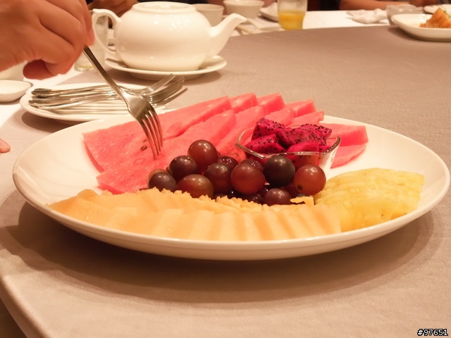 港式甜點 & 季節水果:甜點有芝麻奶酪、西米露;水果拼盤有西瓜、鳳梨、火龍果等。雖然普通,但也不差(尤其西瓜品質很好,很甜!)