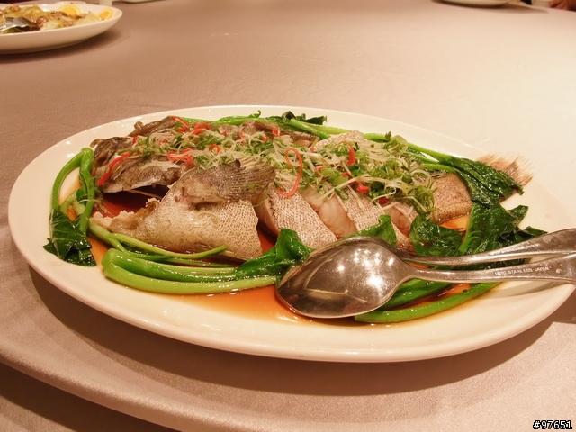 麒麟石班魚:清蒸是一道健康的烹調手法,完全發揮魚肉的鮮嫩。而這一條石斑魚品質很棒,連挑嘴的達哥都稱讚!(顧著拍照,這魚一下就被大家掃光啦...>"<)