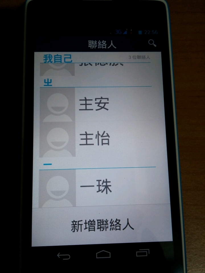 進到聯絡人也是非常簡單,只有人,搜尋和大大的新增聯絡人按鈕,不會有按鈕能讓你去連結到設定同步FB聯絡人等東西