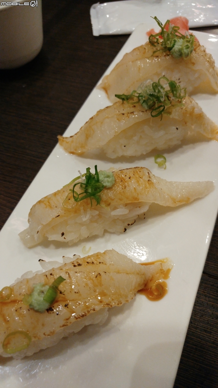 炙燒系列的壽司我們選了炙牛肉和炙干貝,炙牛肉光看外觀就讓人想流口水了,吃進嘴裡,有股炭烤的香氣漂出,也咬的出肉質鮮美,歐伊細~;炙干貝則是搭配洋蔥絲,在咀嚼中,可以感覺出干貝的Q彈,滋味爽口。