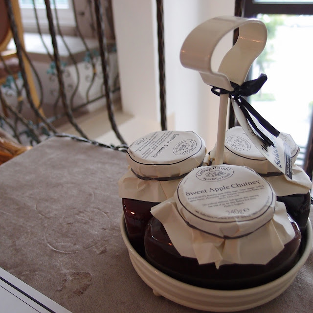 這間T&C(The Teapottery)座落在美術館整間店敲敲打打裝潢將有近半年之久啊!就在11月悄悄的掛上了招牌.整間餐廳只供應早餐及英式下午茶餐廳內部裝潢奢華又貴氣.非常注重細節服務人員也非常親切.以早午餐價位來說單價雖然較高但在這種空間氛圍用餐未嘗不是一種享受!?手感佳又精緻的MENU.綁上印有店家LOGO的訂製緞帶不過打開後內部圖文配色缺少一致性...餐桌紙有筆繪素描的店家形象及產品意象圖.這個餐桌紙生動又活潑.會讓用餐前想保持優雅姿態的客人放鬆起來英式經典早餐 綜合水果生菜野蘑菇普羅旺斯烤蕃茄這烤番茄香料再多一些.烤的時間再長一點會更好 馬鈴薯 臘腸.火腿.培根和厚片土司 離開時老闆娘送了一袋小禮物 手工小點心一份~~包裝精美度100%其實就在寫這篇食記的同時店家把原先店名The teapottery更改成T&C(The teapottery)T&C確實會比較好記.但有點像美式餐廳優雅度和質感好像會降低一點畢竟餐廳的名稱還是要有記憶點會更好阿~呵科科愛吃喝。又見貴氣早午餐T&C (The teapottery)