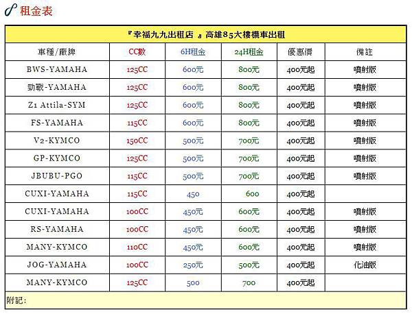 幸福九九機車等出租店 ( 有機車 一般的腳踏車) https://www.facebook.com/happy99rentstore/