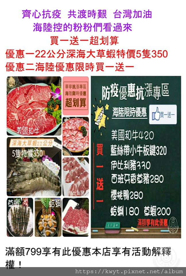 防疫雙人套餐799元肉品加量不加價,肉量各加50% (可選一種湯頭1500c.c.)