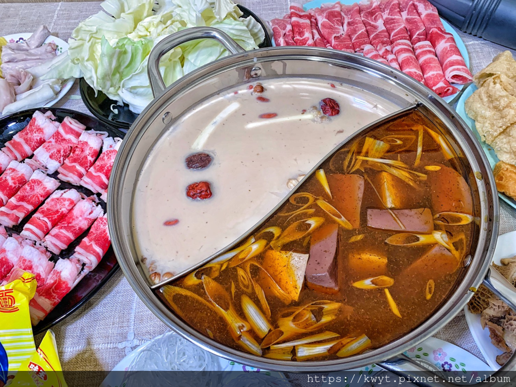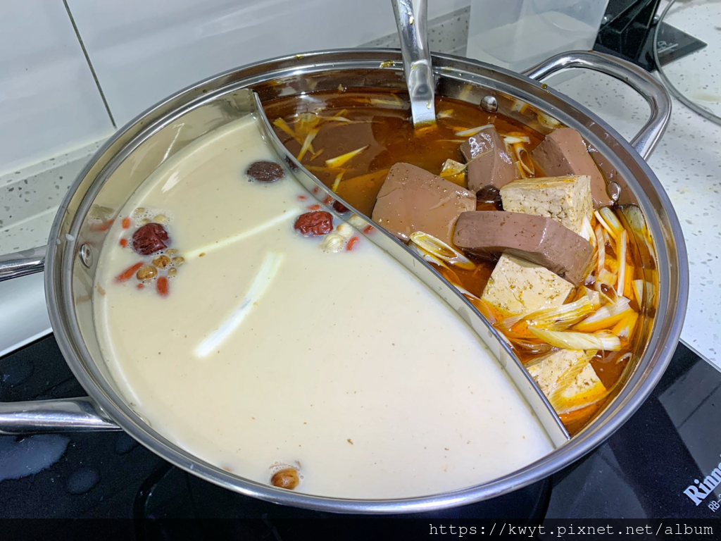 兩包湯大概各倒半包剛好在鴛鴦鍋大概8分滿的位置,開煮!