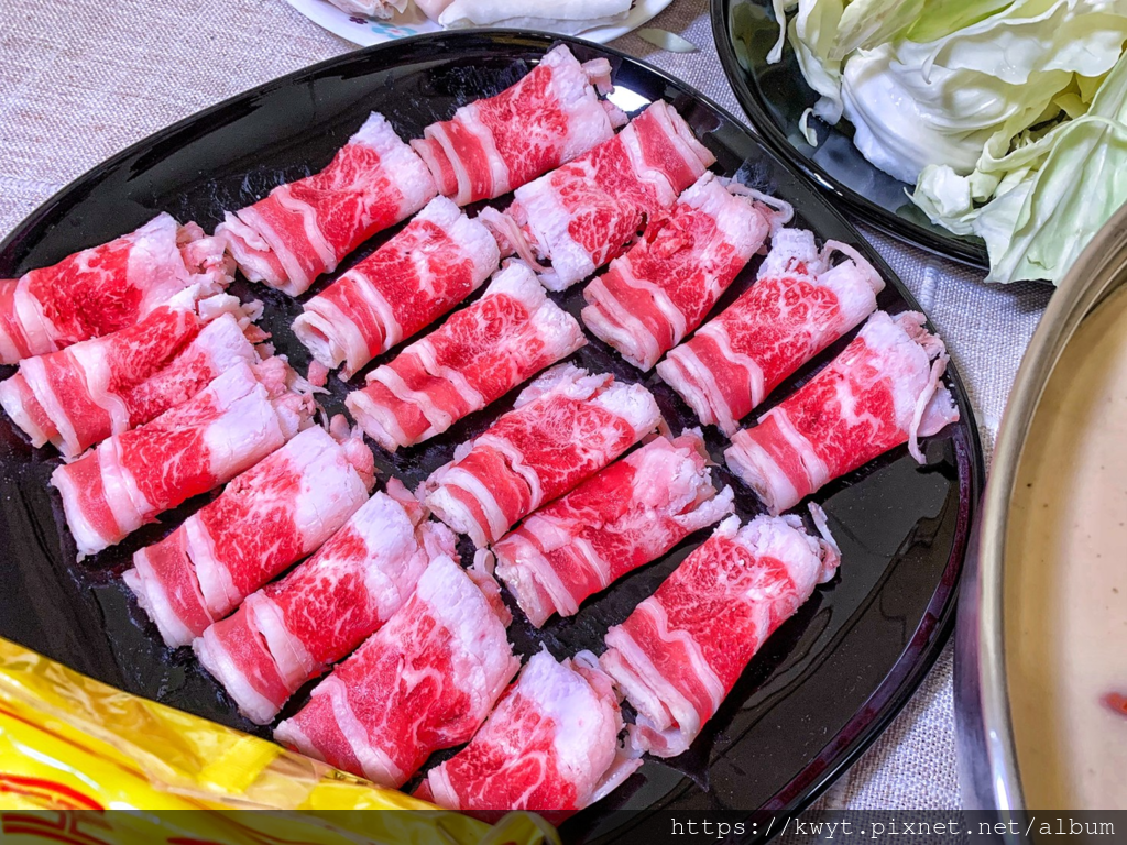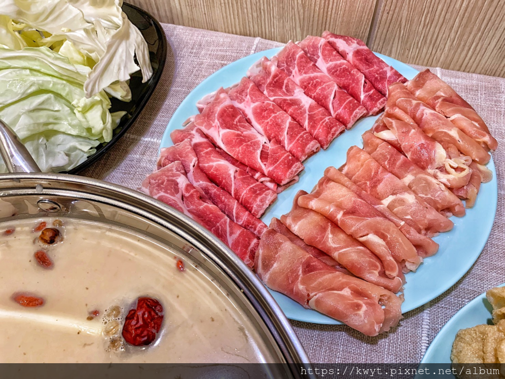 油脂分布均勻如梅花的梅花豬肉片,因美麗的油脂分布,而有的軟嫩肉質,不管是在養生湯或麻辣湯裡涮都是軟嫩且帶有肉甜味的。