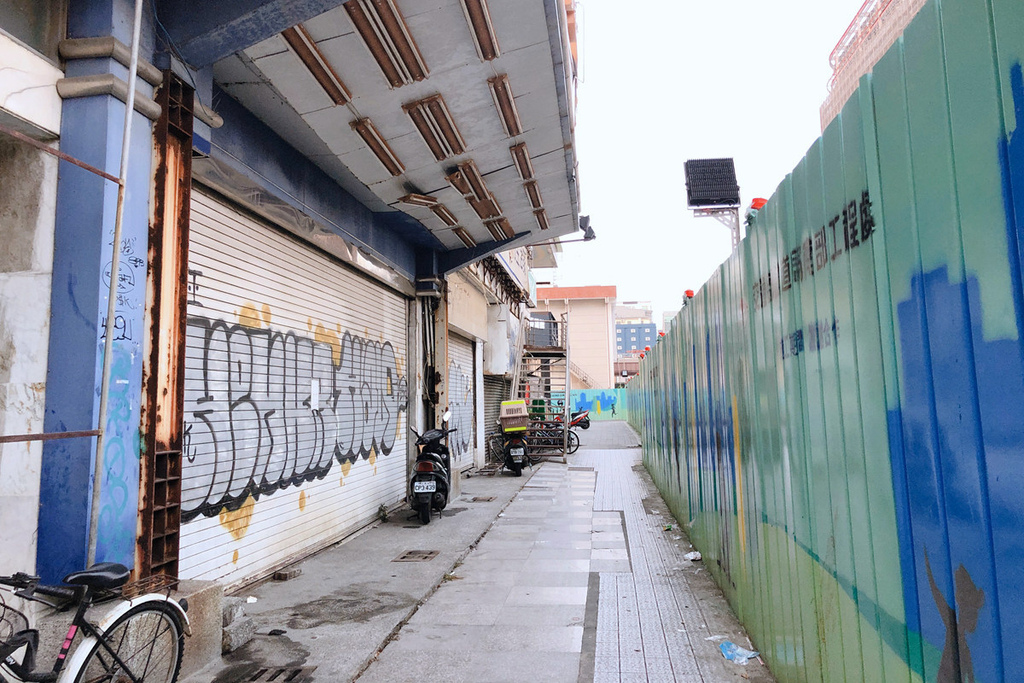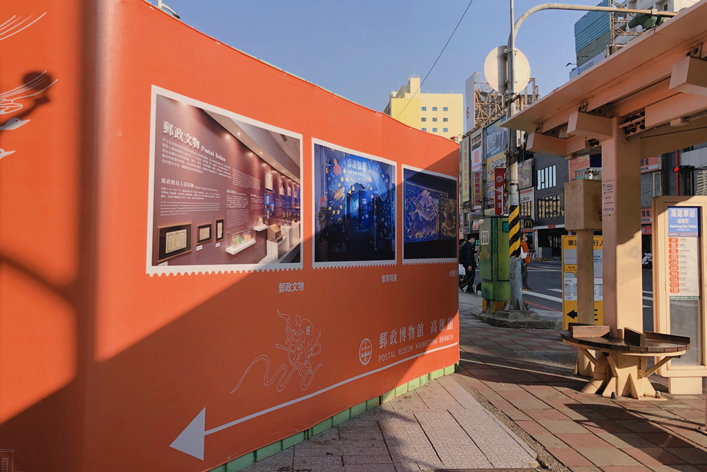 由於高雄火車站還在施工,所以這整排都用圍籬圍起來了,人煙稀少,地上還散落一些垃圾。走到尾端就是我們要前往的【郵政博物館】囉!
