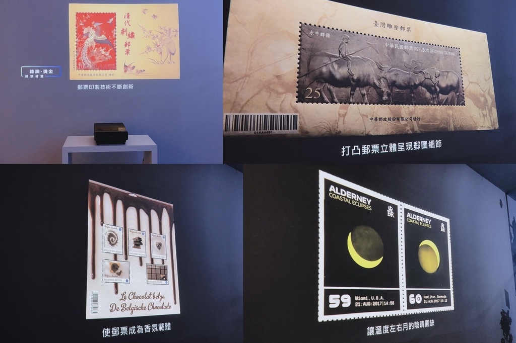 中間座椅區所面對的牆面,會播放郵票相關的影片,介紹的內容超豐富的,簡單拍個幾張給大家看看:)