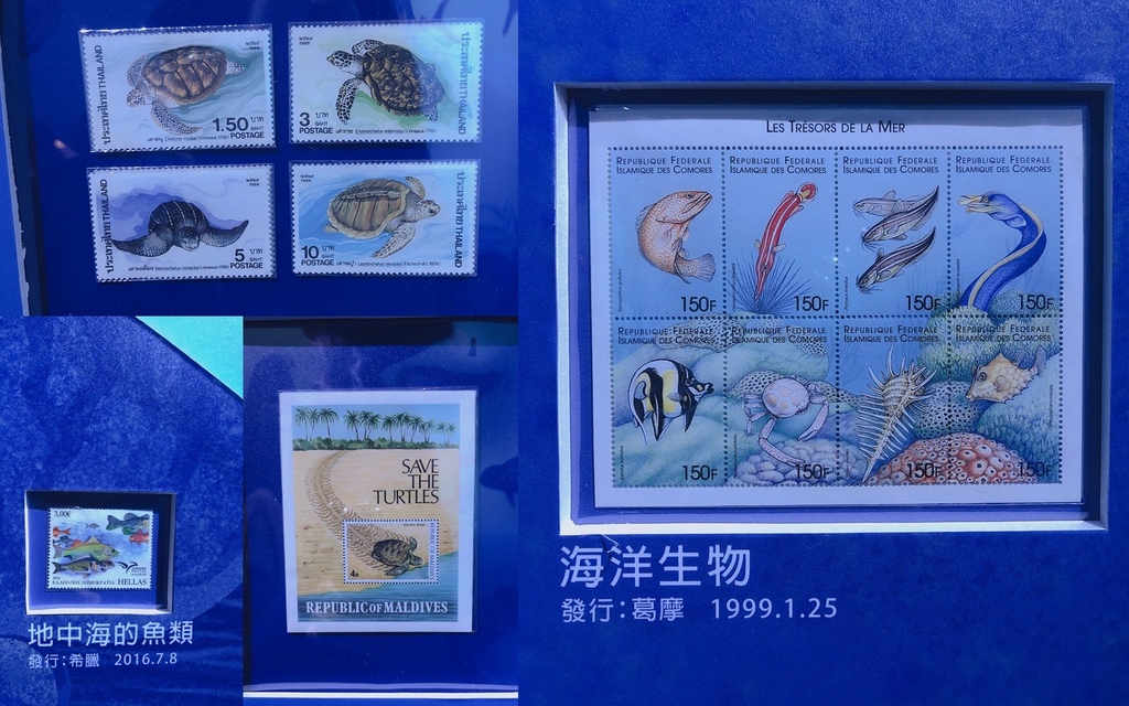 走進特展的區域,這裡展示了相當多的海洋主題郵票,拍了幾張我最喜歡的:)