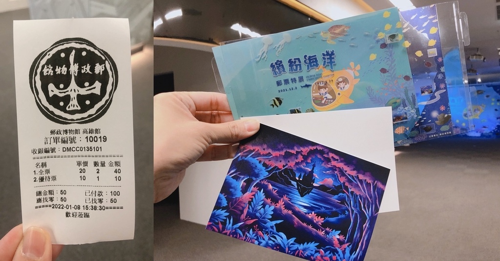 門票價格非常佛,購票後會領到明信片、繽紛海洋郵票特展的紀念卡。