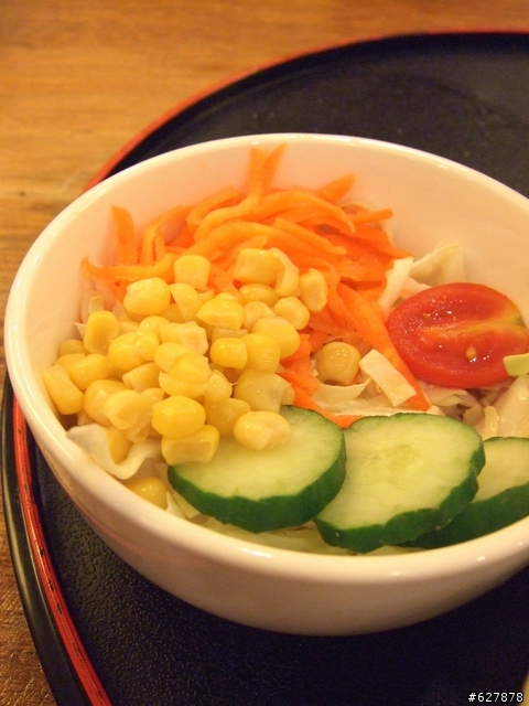套餐裡除了拉麵和雞肉唐揚外,還附了沙拉、牛蒡絲和甜點