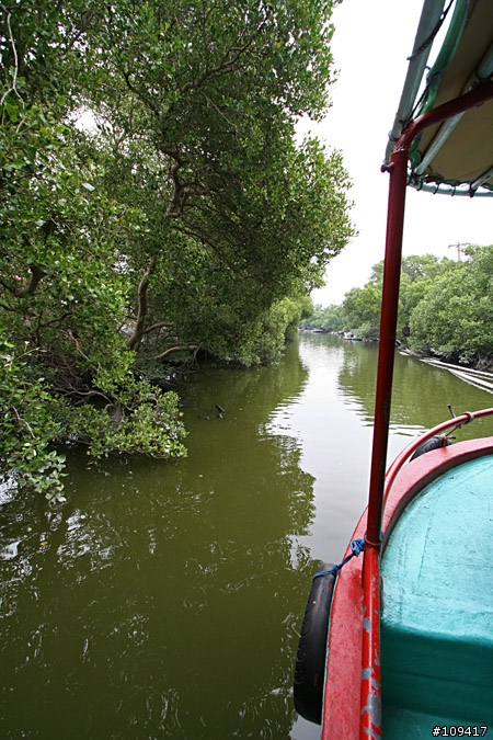 坐上導覽船,過沒多久就會先進入一片大鵬灣裡特有的紅樹林水道自然生態區,這裡主要是以海茄苳為主。