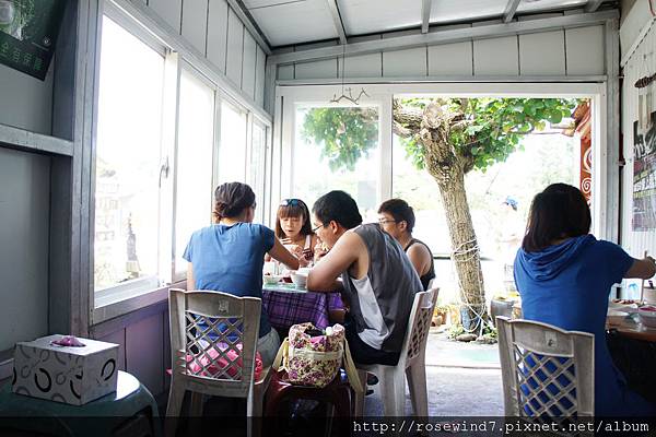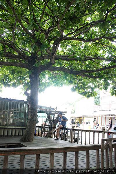 在停車場邊小店的木棧平台上休息了會兒,