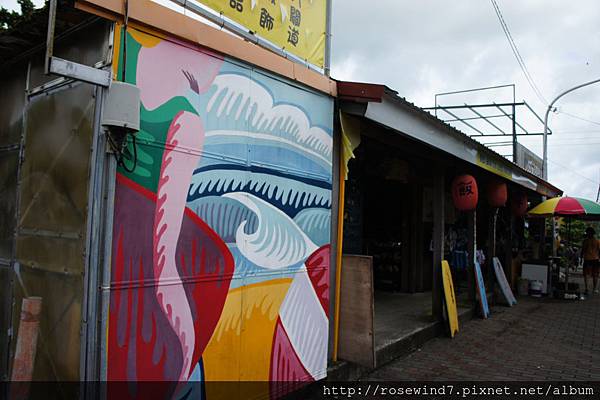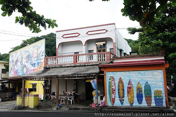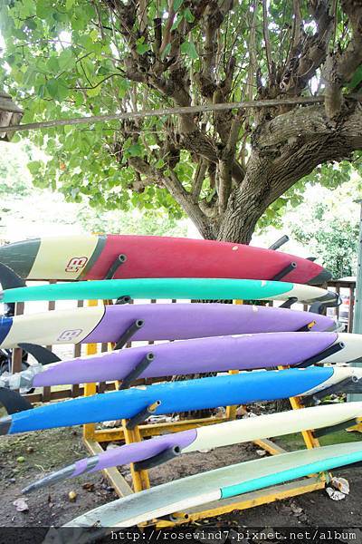 在小店木棧平台的對面是間專門的衝浪皮板出租店,