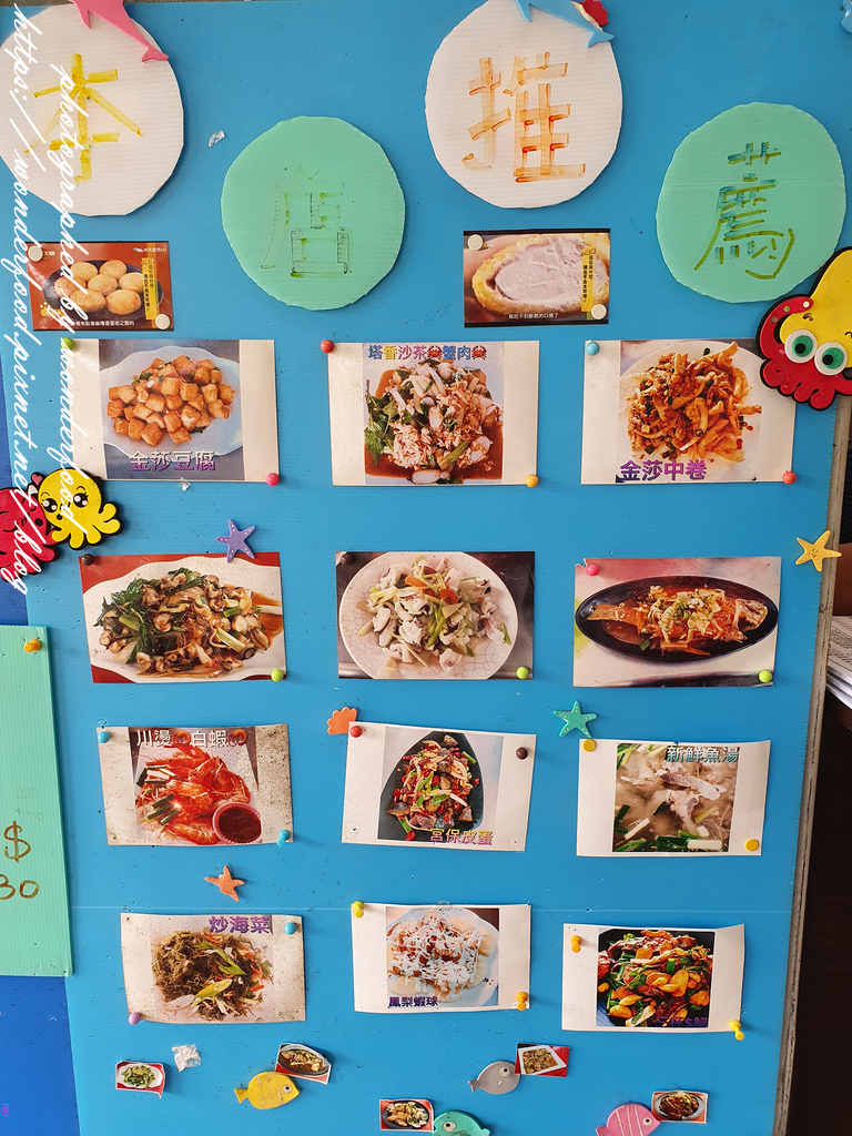 金沙豆腐、塔香沙茶蟹肉、金沙中卷、川燙白蝦、宮保皮蛋、炒海菜、炒泡麵、鳳梨蝦球等都是招牌菜色