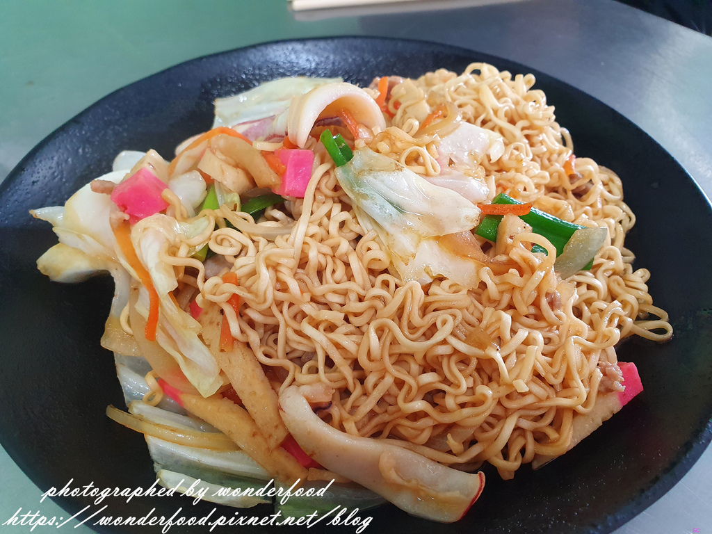 炒泡麵、金沙中卷、娃娃菜、紫菜蚵仔湯