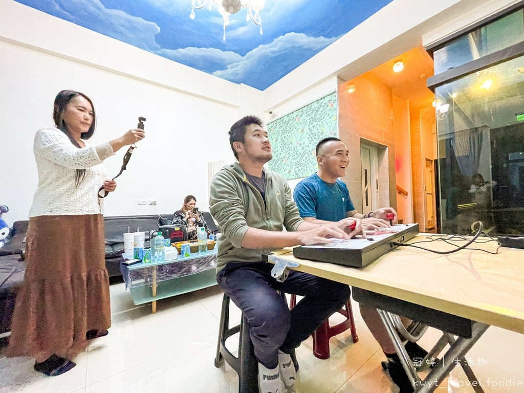一整棟共有五個房間,戶外可烤肉、1F可唱歌、打衛生麻將、玩一波手把遊戲。