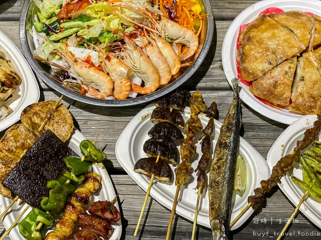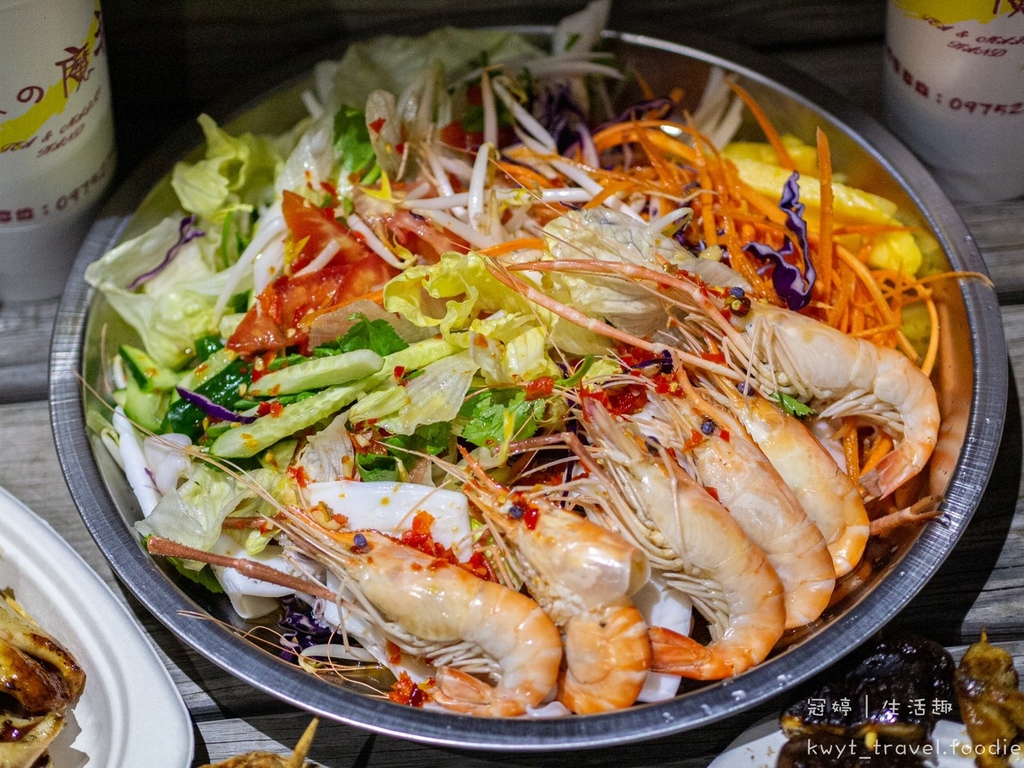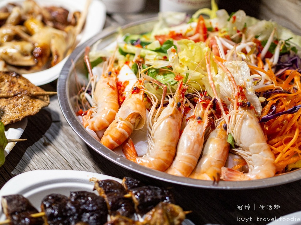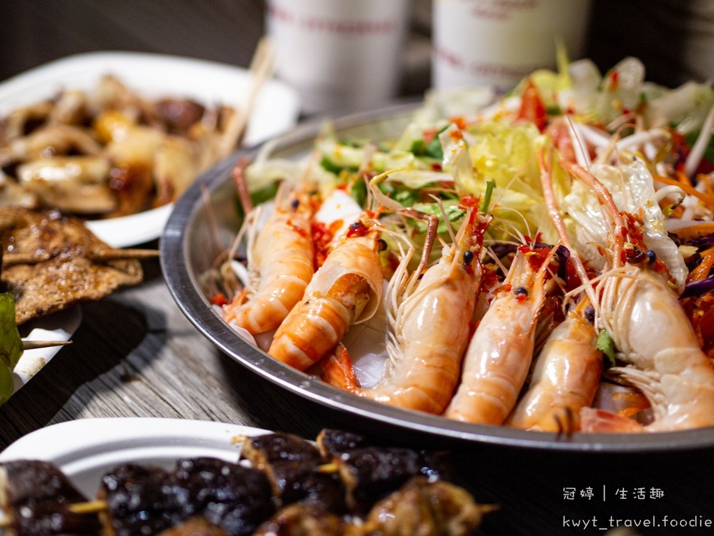 六人歡聚餐,一起大啖恆春的必吃美味,尤其是內的泰國蝦、真材實料系的月亮蝦餅,還有串燒。