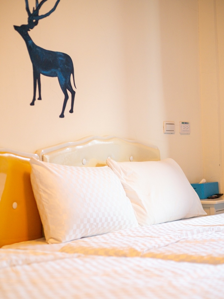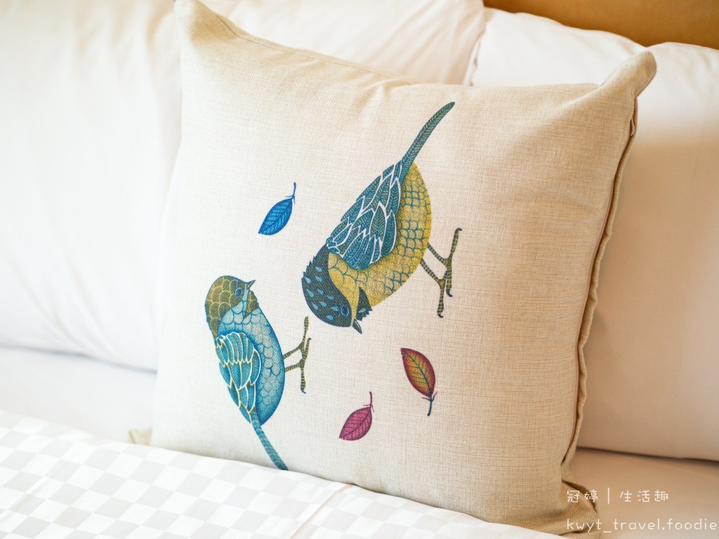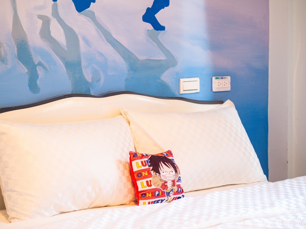 每張床上都有一個與房間主題相應、相襯的小抱枕。