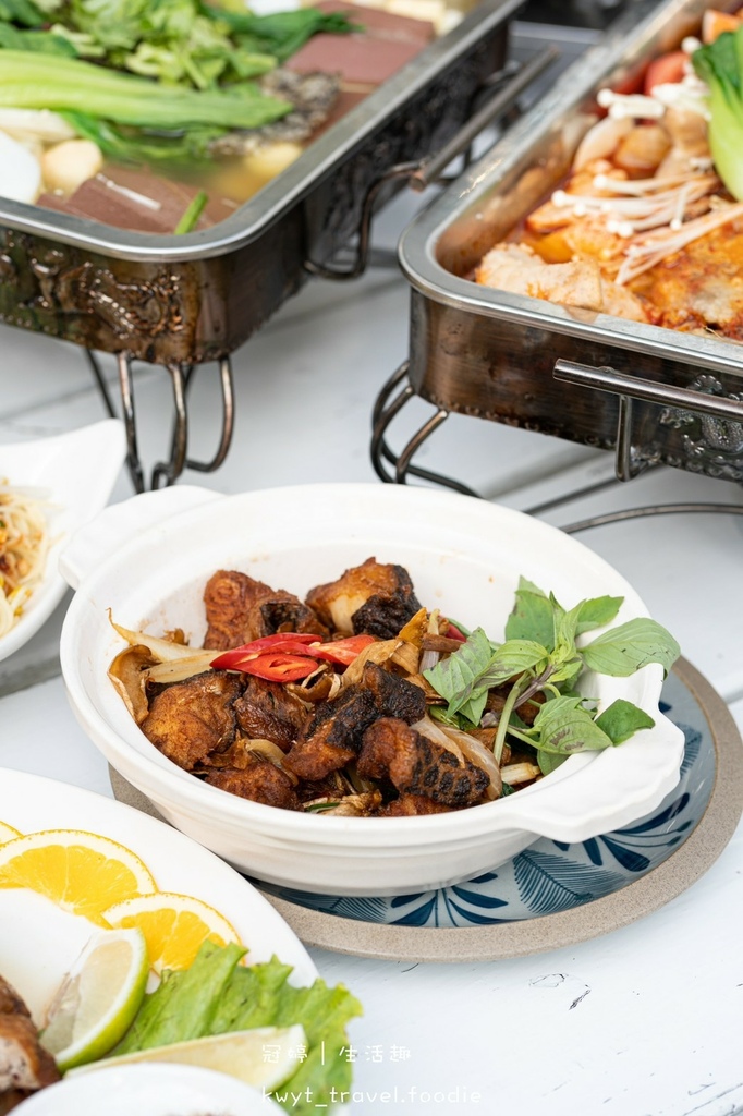 富有濃郁沙茶香氣的湯頭,嚐一口可以品味到其中的富有層次的香氣,經過火侯、時間淬鍊,燉煮多時後,鍋中的多種類時蔬裹上美好的湯頭香氣,也顯得更加美味。
