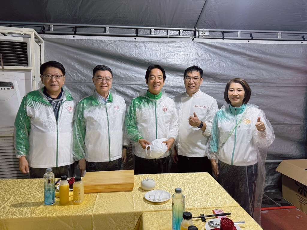 ▼大合照留個紀念!(由左至右:總統府秘書長潘孟安、行政院長卓榮泰、總統賴清德、聞香閣主廚黃建榮、屏東縣長周春米)