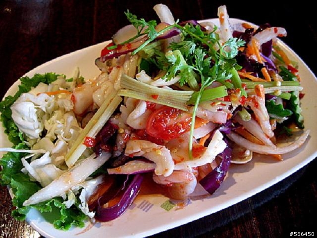 簡單的汆燙加上魚露,檸檬汁,辣椒醬...等泰式料理的調味料,