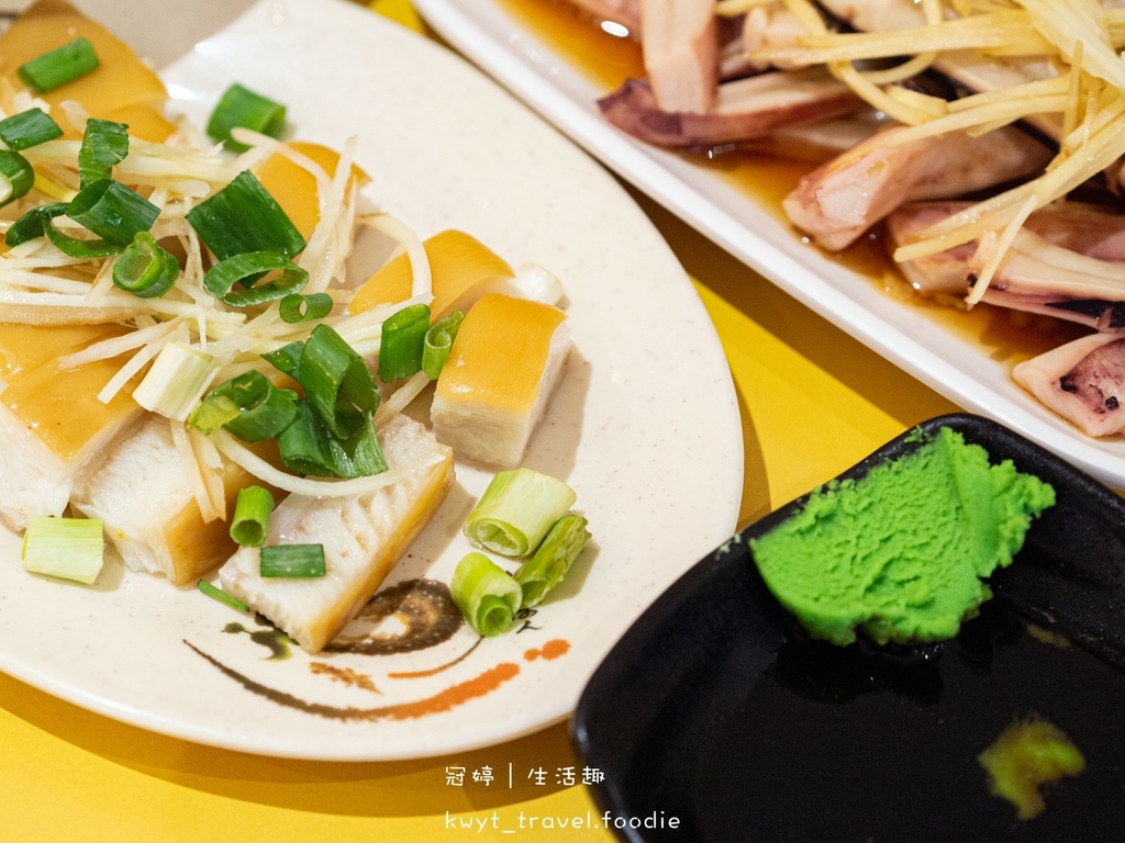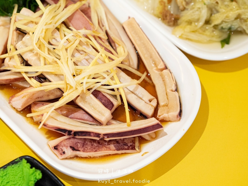夾一塊燙魷魚嚐嚐,甫入口即可感受到屬於新鮮魷魚的鮮甜,還有Q彈口感,單吃不沾醬就很讚。
