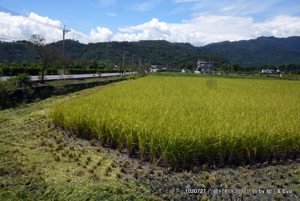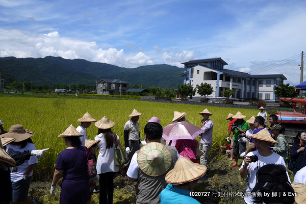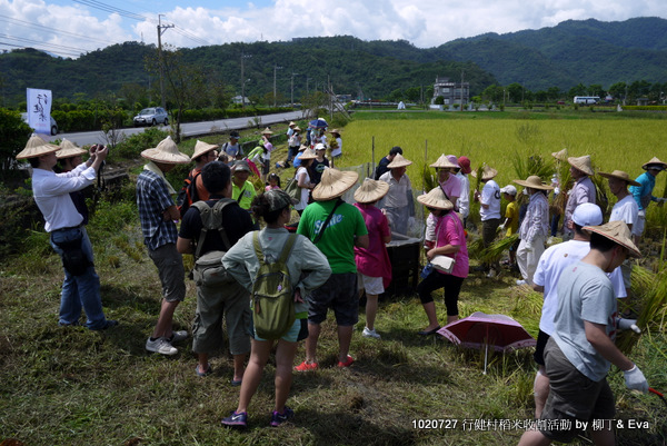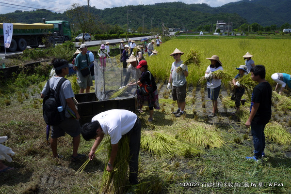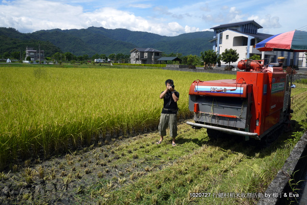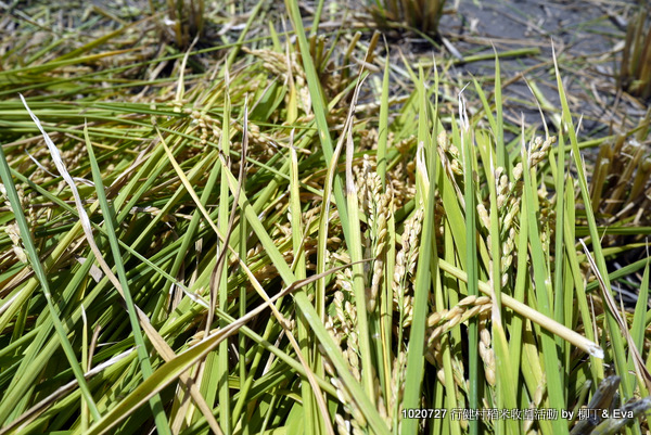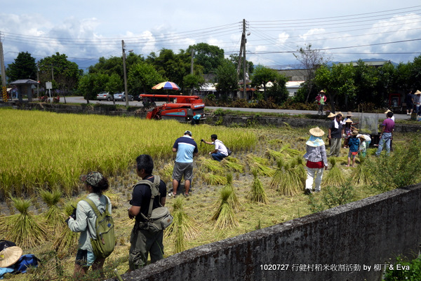這次要割的是本年度第一期稻作,主辦單位很貼心的先用割稻機把最外圍的稻穀割起來,以方便大家進入農田搗亂工作。