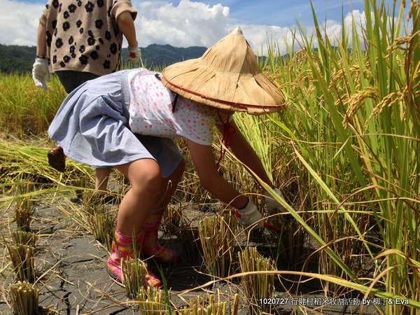 其實割稻並不難,也不需要非常用力,就連小妹妹都割得動,但特別需要的是過人的忍耐力......尤其今天真是給他XX的熱啊!
