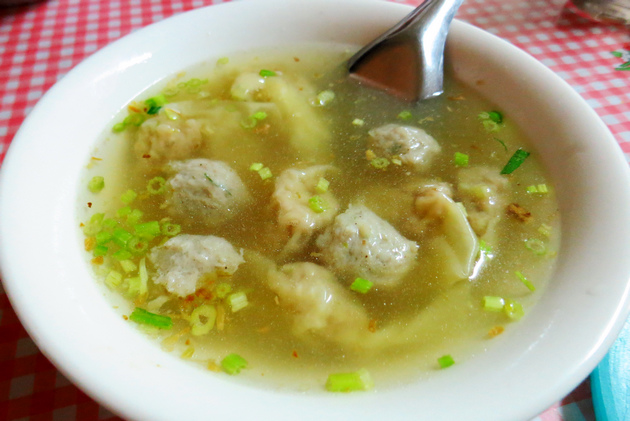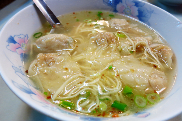 光是吃炸醬麵與麻醬麵,怎麼可以?當然還要點一碗30元的餛飩魚丸湯。