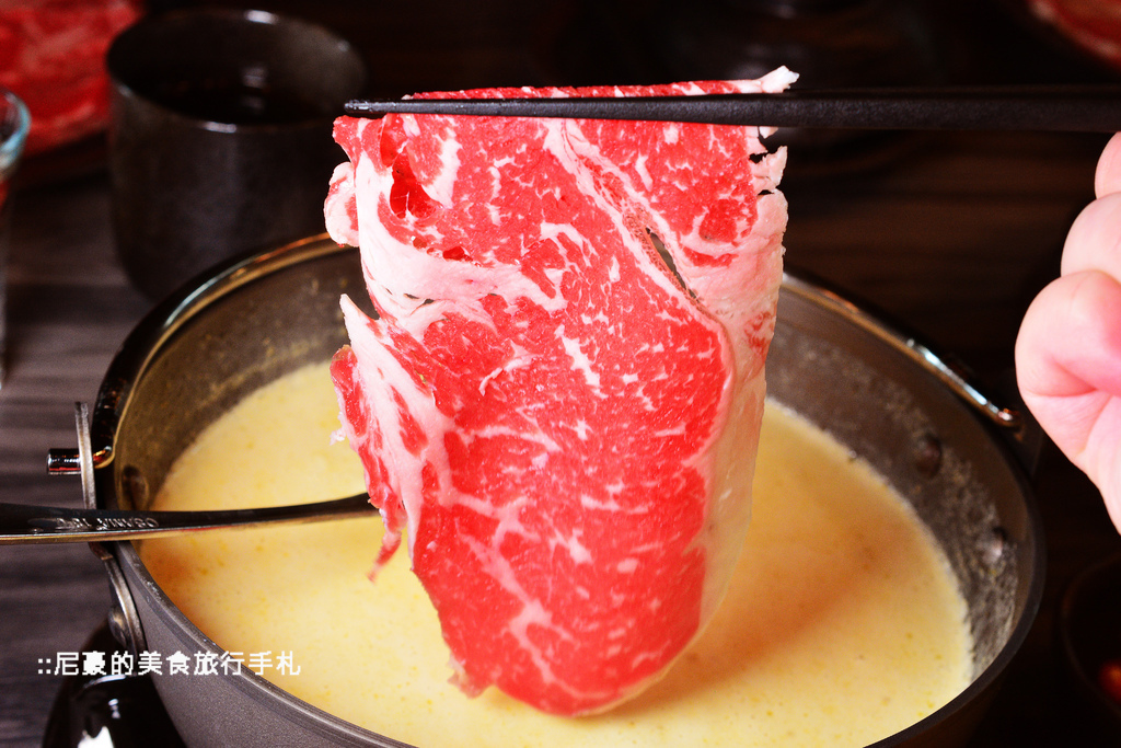 ▲首先這鍋是極黑牛沙朗心,搭配的是香濃的牛奶起司湯底