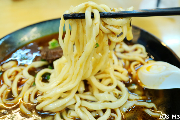 湯頭濃郁微辣,適合重口味的人。韌勁適中的拉麵當日手工現做,晚上不夠賣,扁麵代替。