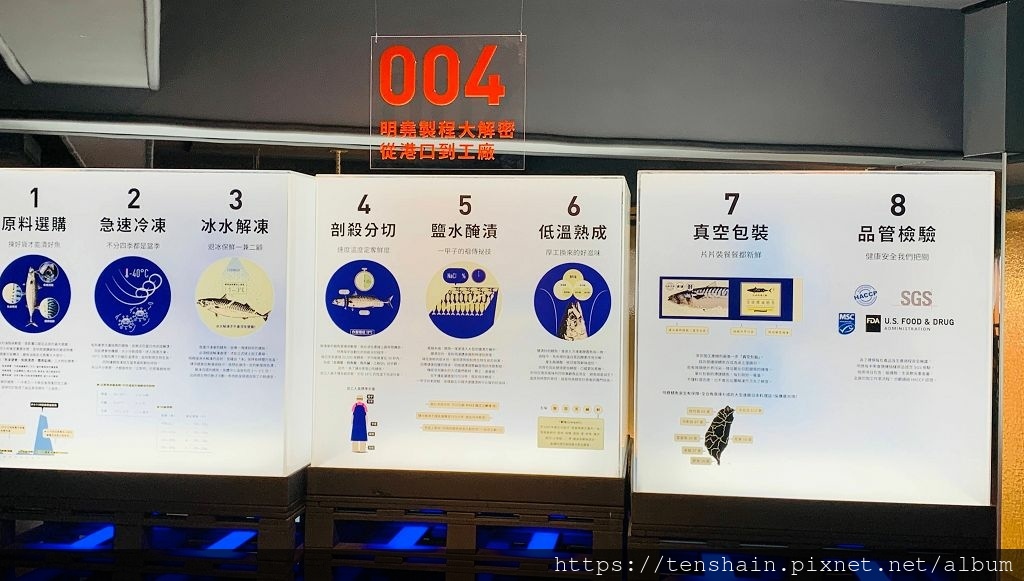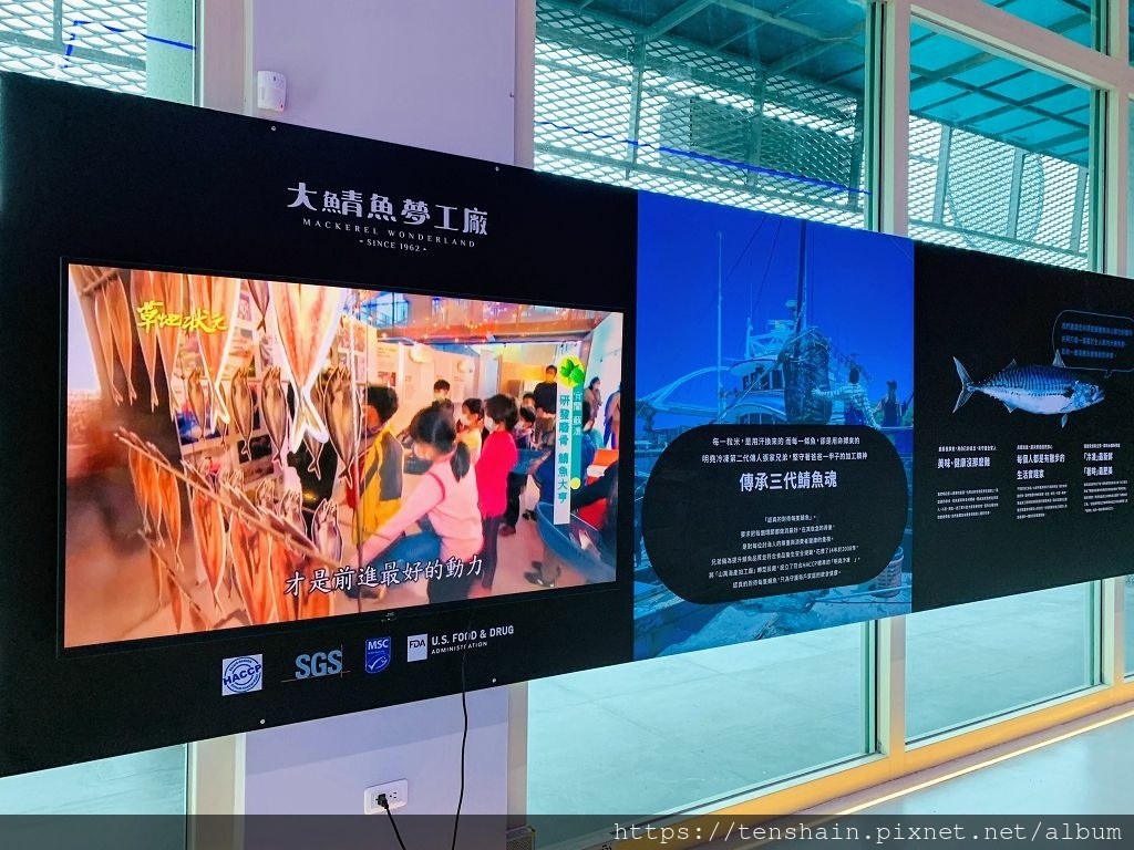 「大鯖魚夢工廠」就是「明堯冷凍」創立的觀光工廠,當然得廣告一下自家產品的製造過程。