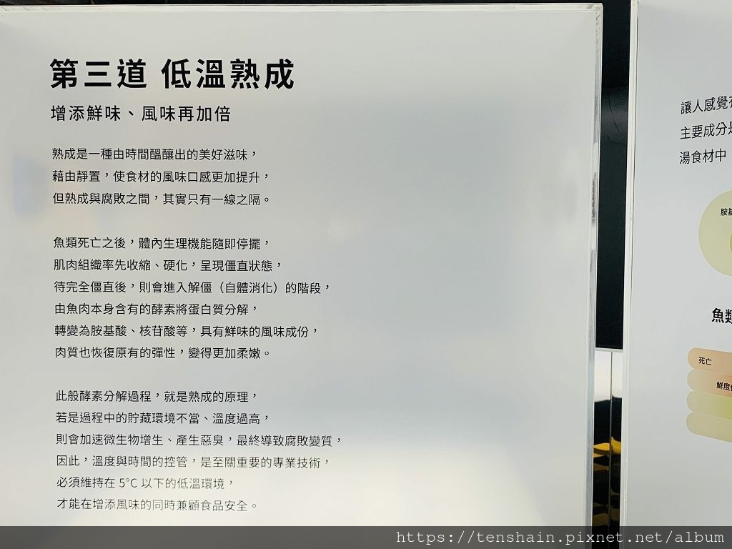 第三道「低溫熟成」,可以再細分成濕式熟成和乾式熟成兩種,我們常吃的「一夜干」就是乾式熟成的代表。