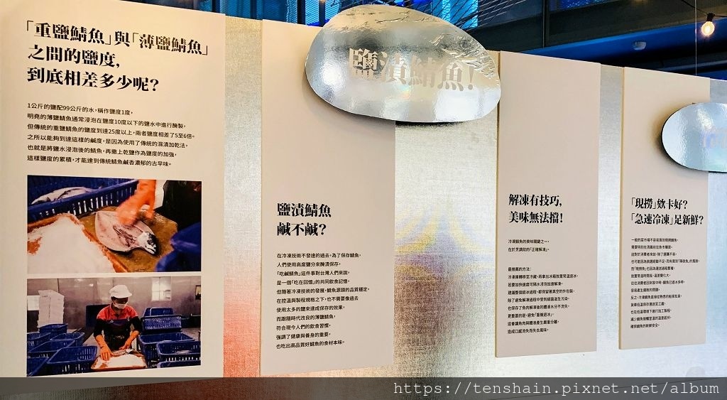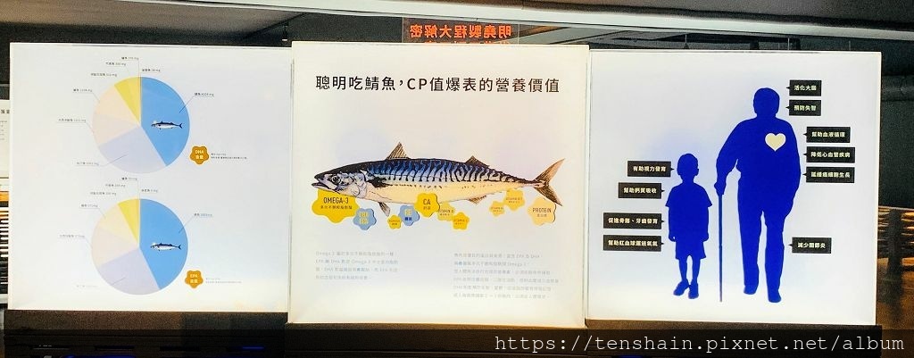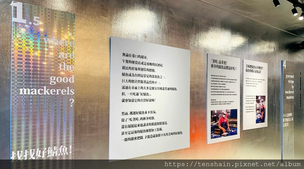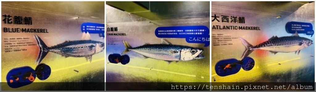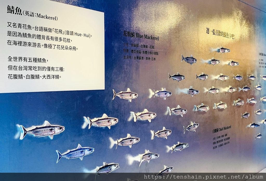 接下來,就邊參觀邊找其餘的兩隻鯖魚紙卡。這部分展示是在告訴我們,「著時」最重要!秋冬的鯖魚皮下脂肪最豐富,所以最好吃。但是,這並不代表只有秋冬才能吃到好吃的鯖魚,拜加工技術進步之賜,只要慎選優良商家的產品,我們全年都能吃到肥美的鯖魚。