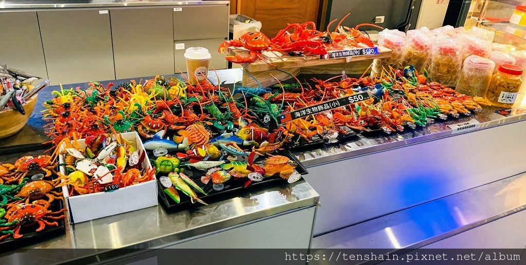 最先看到的是各式各樣的海洋生物模型,親子同遊的旅客,可以買幾個給小朋友玩玩。