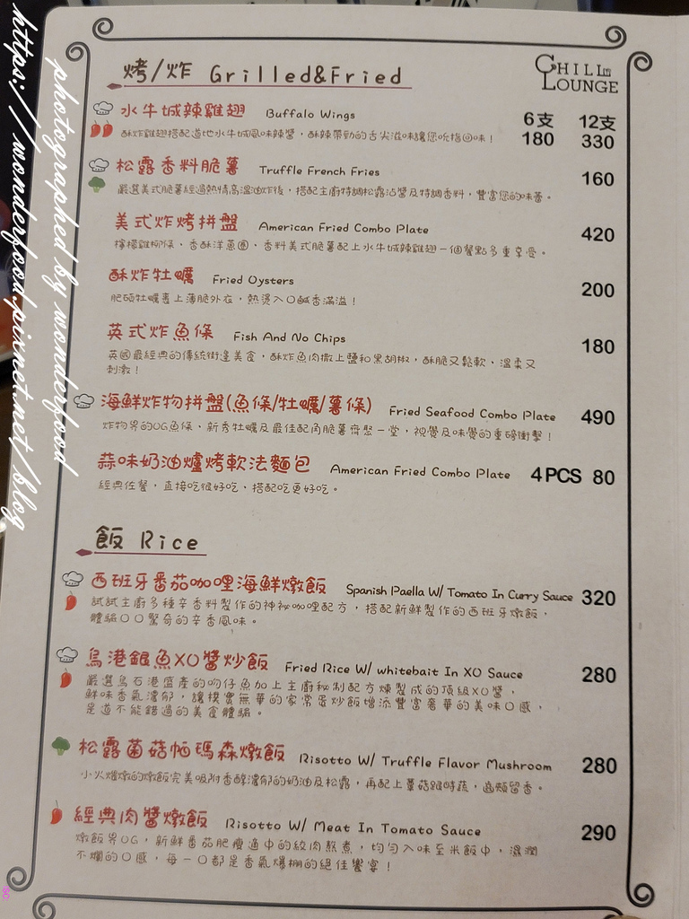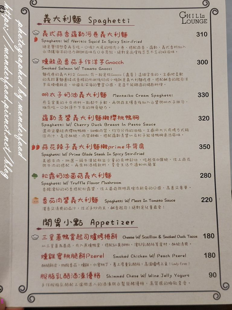 有烤物炸物、義大利麵、燉飯、主菜、沙拉、湯品、開胃小點等等