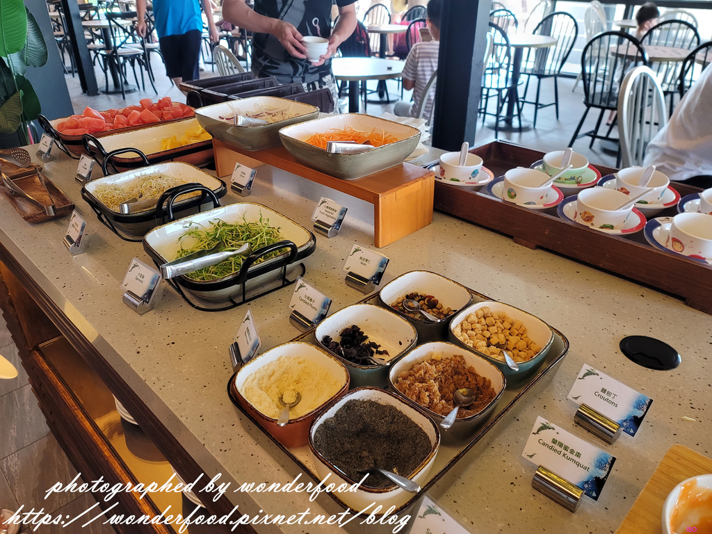 餐點有熱食、沙拉、水果、麵包吐司、豆漿咖啡飲料等