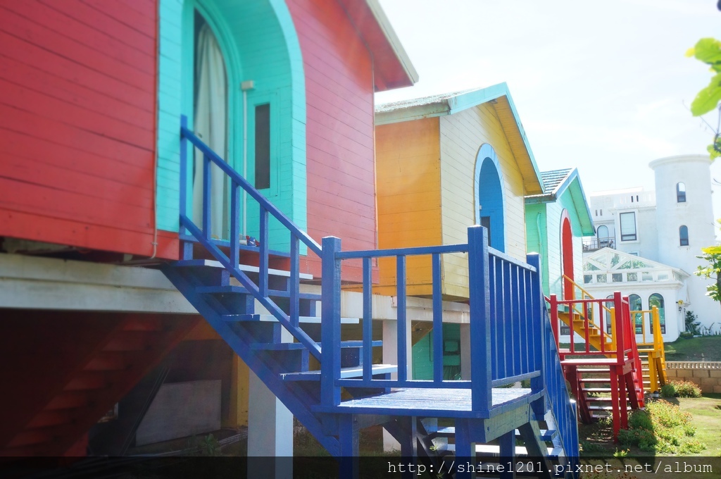 民宿主人很有品味的以3館白色建築、彩色小木屋讓整體環境充滿異國浪漫