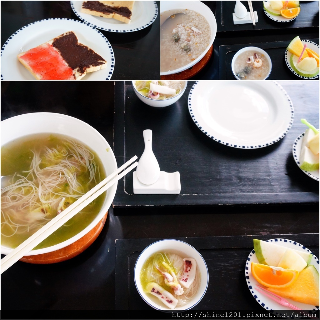 剛好一天海鮮粥、一天小管麵線,還有自助吐司&咖啡、茶包