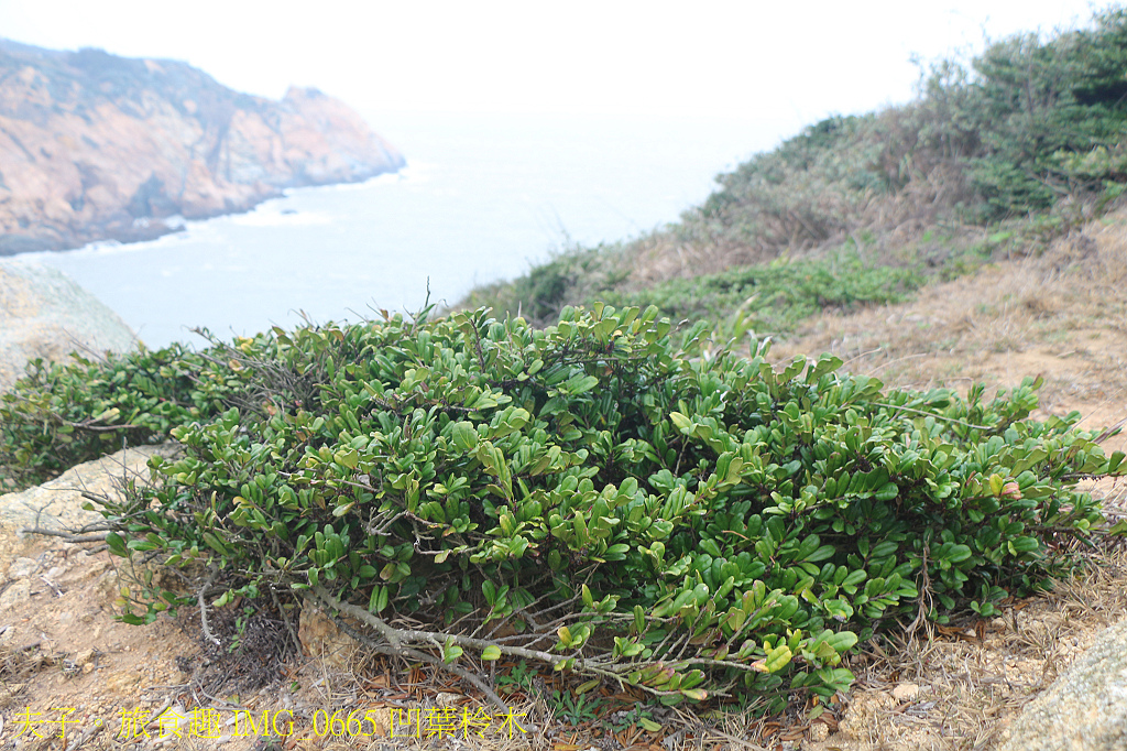 凹葉柃木,馬祖原生植物,又稱馬祖紫檀,株強健且終年長綠,可以忍受嚴厲的海風吹襲,受到海上東北季風長年的吹拂,產生了獨特的 「風剪作用」,展現其嶙峋蒼勁之美。