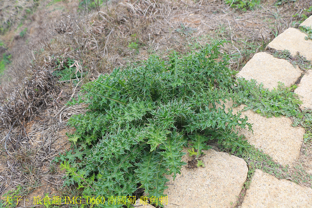 坡地上的南國薊 (俗稱雞角刺) 外觀與新台幣千元大鈔上印製的塔塔加薊 (台灣特有的品種,原稱玉山薊,2019年起更名為塔塔加薊) 十分相似,同為菊科薊屬珍稀植物。