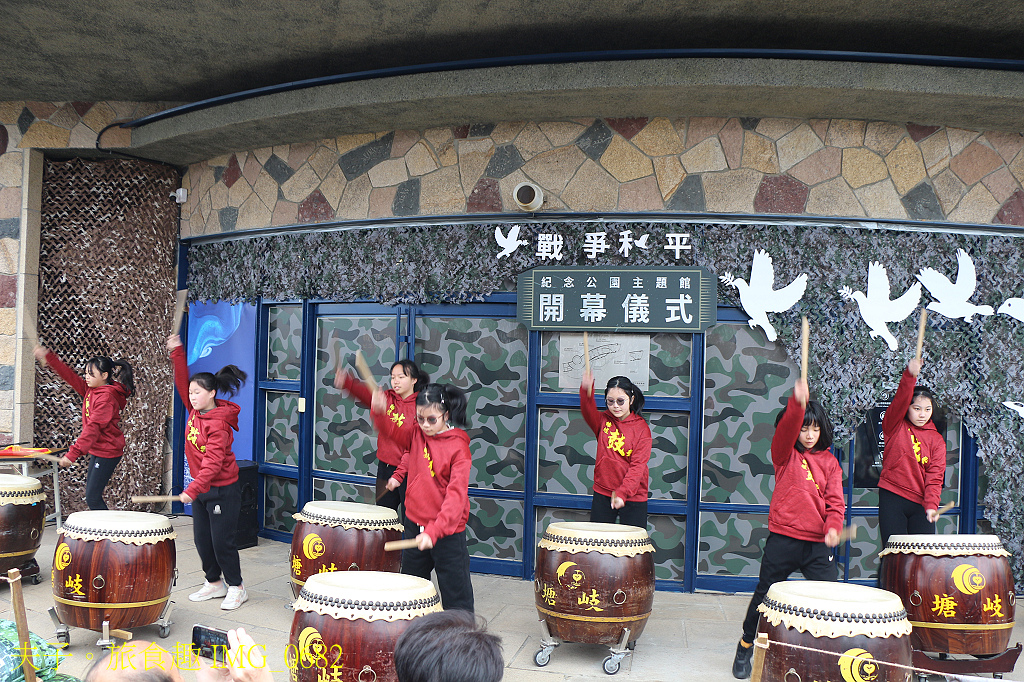 北竿塘岐國小塘岐鼓藝隊用氣勢磅礴的鼓樂為「戰爭與和平紀念公園主題館」的開幕典禮揭開序幕。