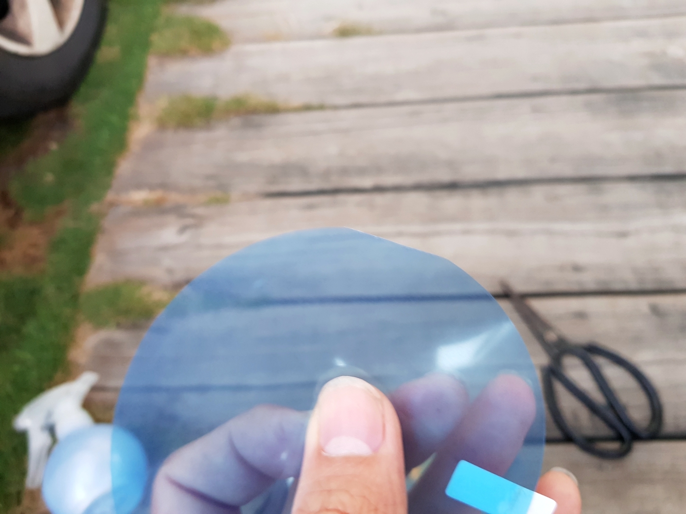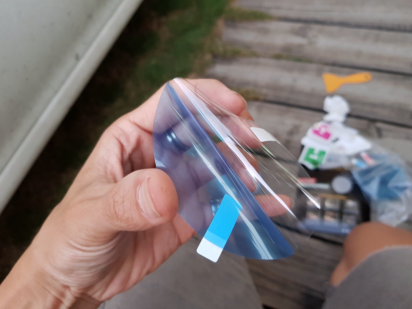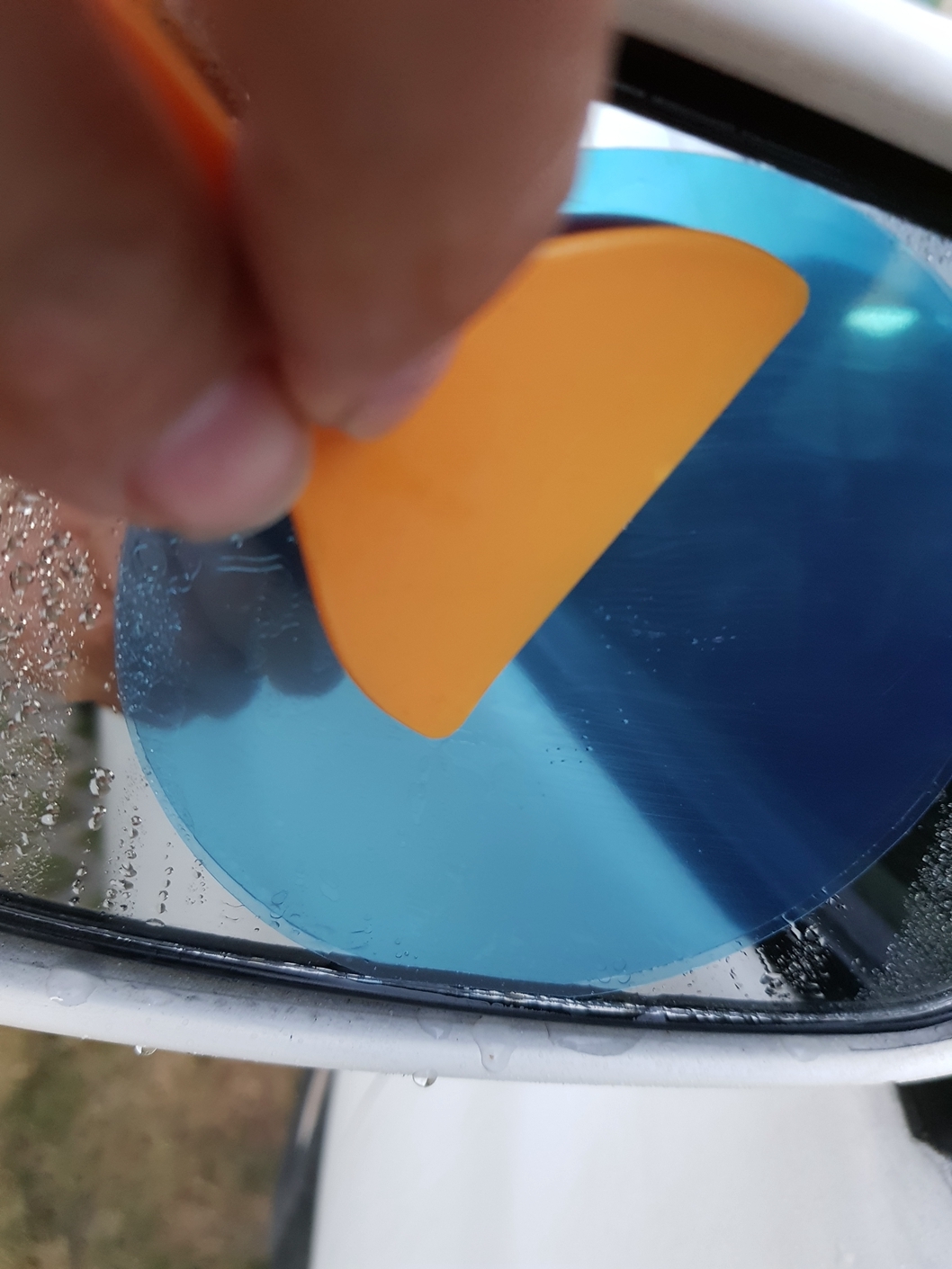 貼完之後再用刮刀刮除裏頭的水~ 讓防水膜跟鏡片服貼!
