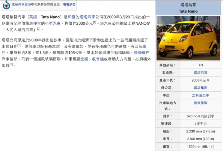 原來印度的後置後驅塔塔納努汽車是高級車.......