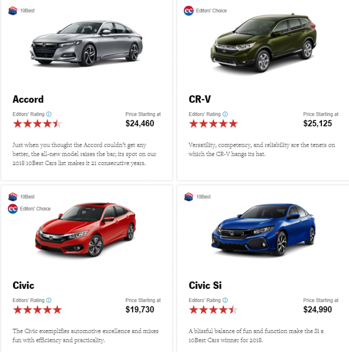 這次Car of the Year由Honda Accord擊敗Kia Stinger與Toyota Camry拿下,獲獎原因是因為它擁有大器外觀、充裕的使用空間與豐富配備。